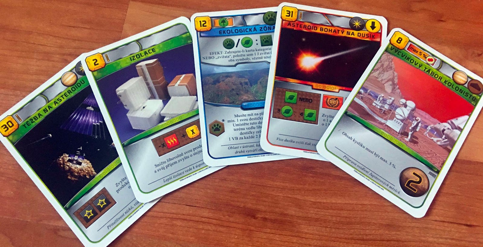 - Hrateľnost a ovládnutie hry – princípy hrania TM Vám budú jasné po prvých pár kolách, byť však majstrom v hernej stratégii sa Vám nepodarí po jednej hre. Čo ale vôbec neznamená, že Vás prvá hra nebude baviť, dovolím si povedať, že Vás bude baviť každá. Kariet projektov je veľmi veľa, a ešte som nevidel, že by sa nejaká karta opakovala. Karty sú jedinečné, čo značí, že každá jedna hra bude iná, a vždy sa stretnete s niečím novým a budete musieť prispôsobovať stratégiu podľa toho, čo Vám príde na ruku.
