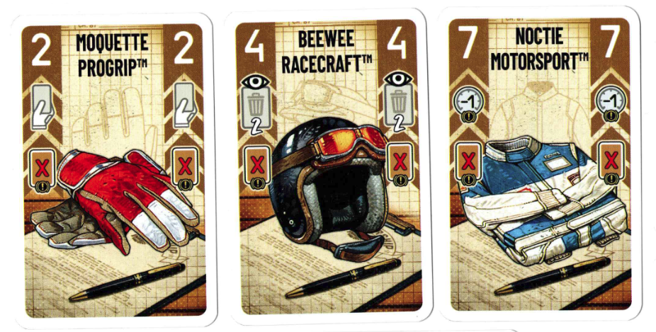Prilba, oblek a rukavice, po 7ks z každej karty, no pozrite sami: